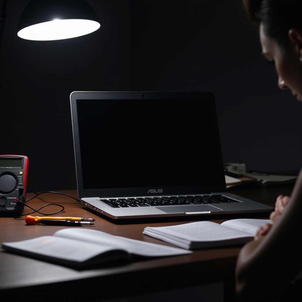 Why does my Asus laptop screen stay black after pressing the power button?